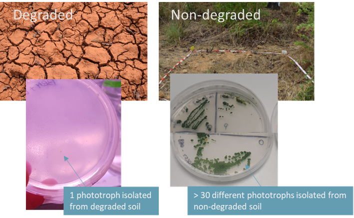 - Reduced soil biota, just a few different species → loss of biodiversity and loss of ecosystem functionality